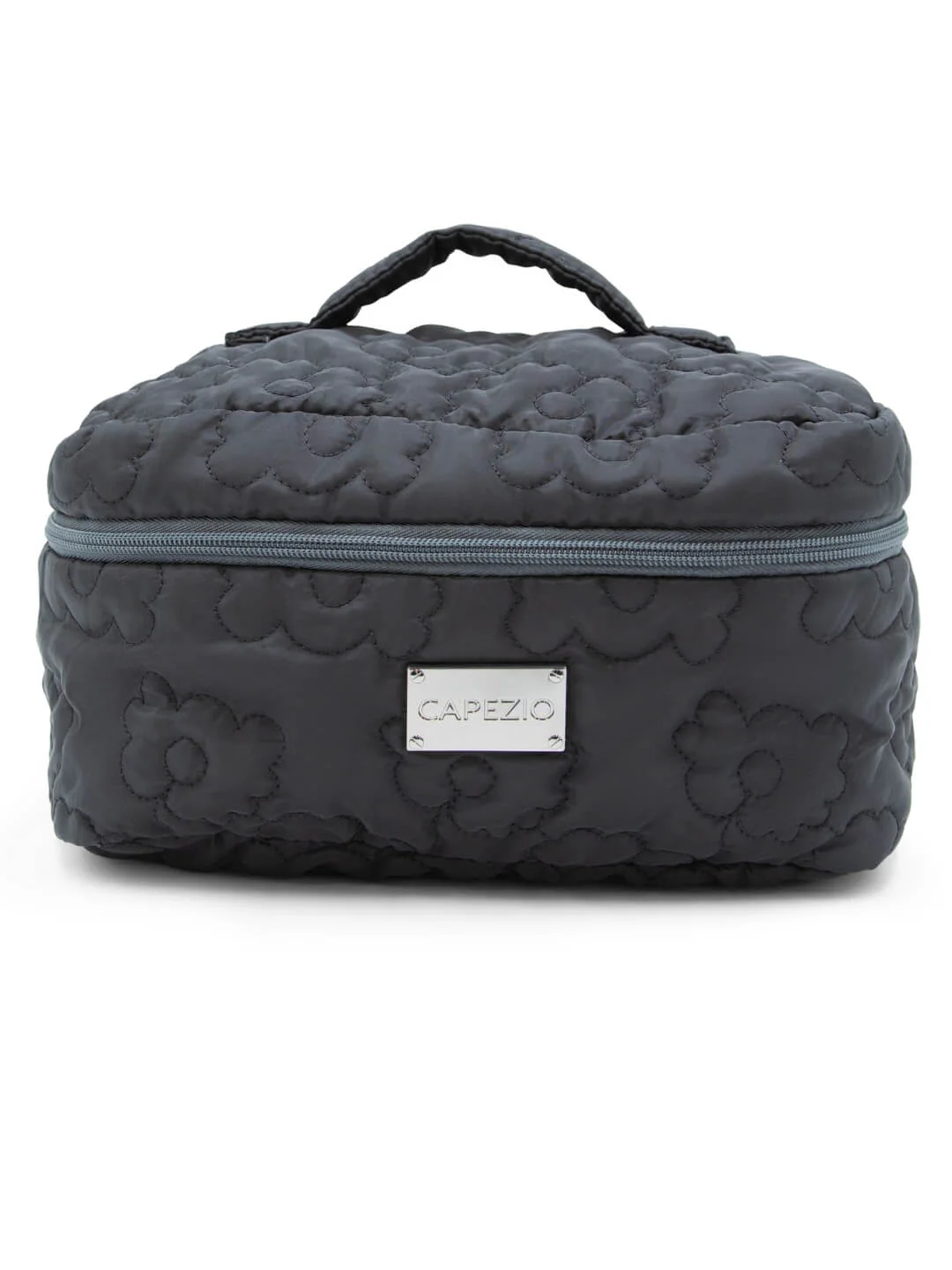 Introducing the Fleur Vanity Case! This quilted case features a convenient self-handle on top, making it easy to carry for all your adventures?whether you?re heading to the studio, traveling, or simply organizing your beauty essentials at home. The secure zipper closure with a sleek silver double-pull ensures that your belongings are safely stored. This vanity case is the perfect size for makeup, toiletries, and small accessories. Its compact design fits easily into your bag, making it an essential companion for travel or daily use.