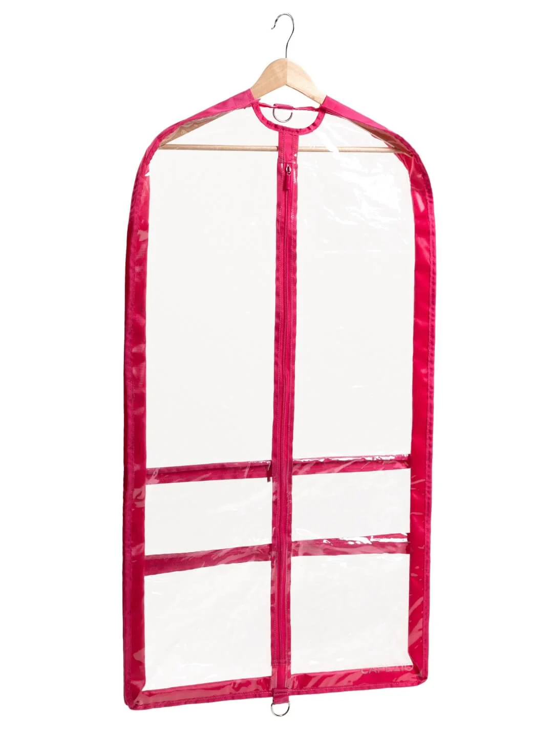 The On The Go Garment Bag is a must-have for dancers who are always on the move. Made from 100% PVC and 100% Nylon, this garment bag is durable and long-lasting. The clear front and back design with colored trim allow you to easily identify your dancewear and costumes, while the full zipper closure ensures your garments stay in place. The 3″ expandable gusset provides extra space for bulkier items, and the 3 outer pockets provide convenient storage for accessories and shoes. Whether you’re traveling to a competition or just need to transport your dancewear between classes, the On The Go Dance Garment Bag has got you covered.